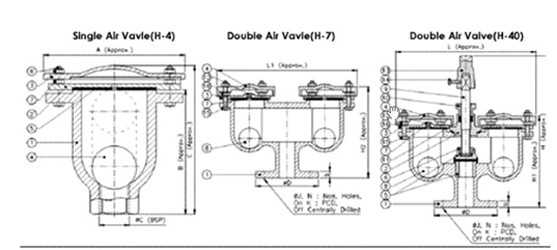To release air when the main is being filled and to close and remain closed when the pipes is full to prevent loss of water. To open and admit air while the main is being emptied. To release air accumulated under pressure during normal working conditions in the pipe.
